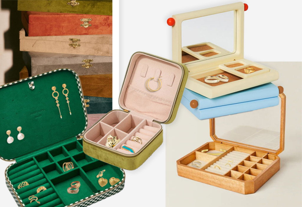 On passe plus de temps à démêler nos bijoux qu’à les porter. Voici donc 11 idées de rangements malins, aussi pratiques qu’élégants, pour protéger ses trésors. Porte-bijoux arborescents en métal doré, coffrets en velours aux compartiments ingénieux, boîtes en marbre élégantes ou étuis de voyage compacts – chacune trouvera la solution idéale. Crédit : Zara Home / Daisy Jewellery / .hriam. / La Boîte à Bijoux / Areaware