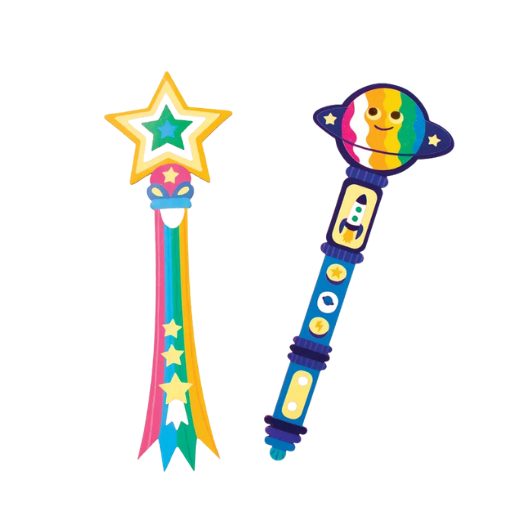 On rassemble les paillettes, les couleurs, et abracadabra : la baguette est prête. Super pour les 4-8 ans.