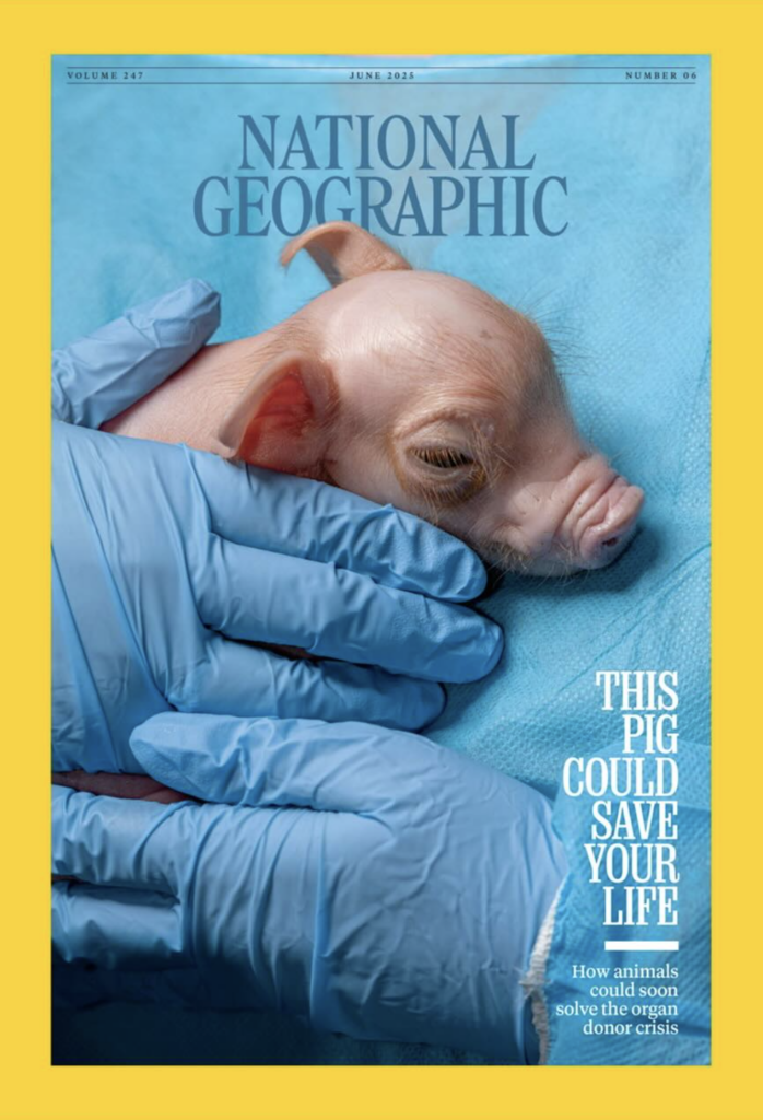 Pour sa nouvelle couverture, National Geographic photographie un porcelet pas tout à fait comme les autres : un animal génétiquement modifié pour rendre possibles les greffes entre espèces. L’enquête revient sur un enjeu majeur : la xénotransplantation, cette piste scientifique qui pourrait enfin répondre à la crise mondiale du don d’organes.